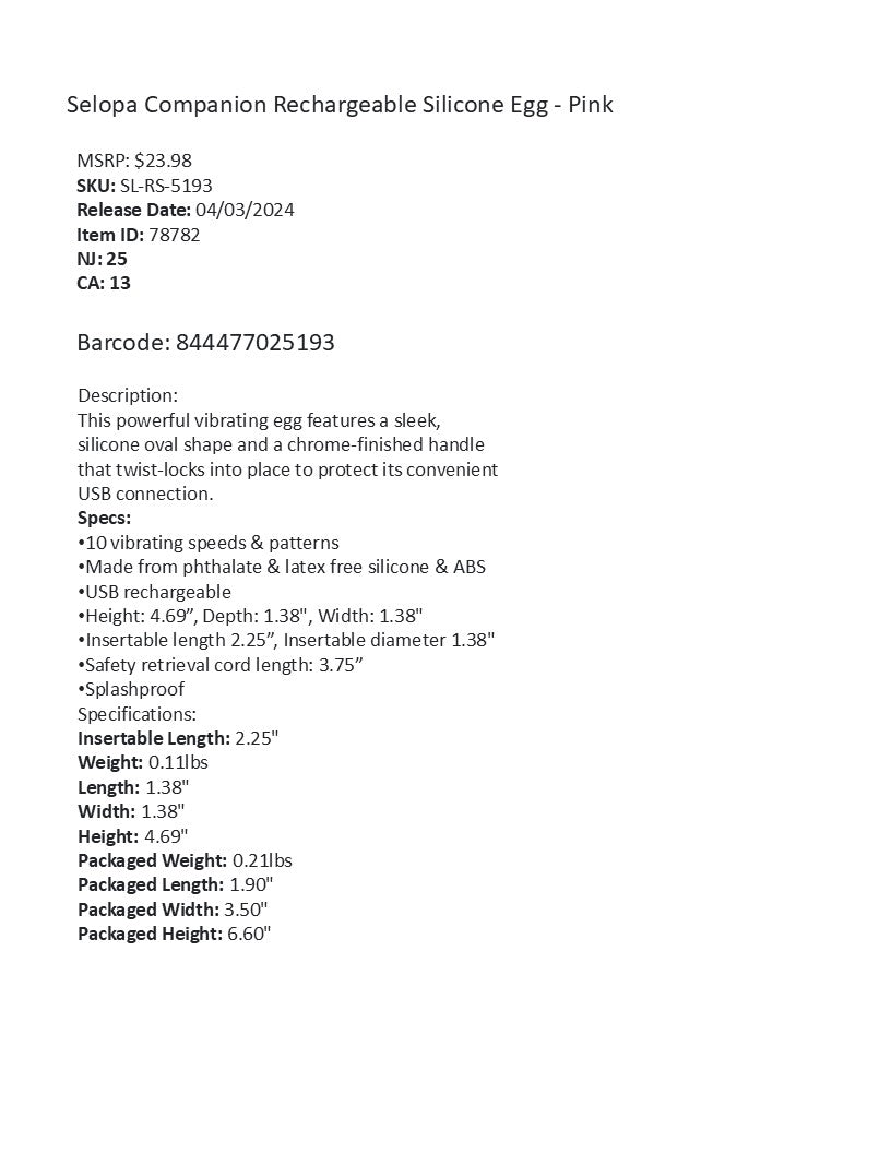 Selopa Companion Rechargeable Silicone Egg - Pink
